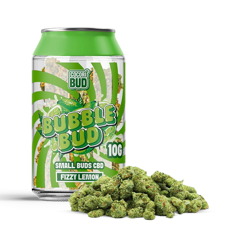 Le Bubble Bud Fizzy Lemon de Cocoribud est présenté dans une canette hermétique contenant 10 g de Small Buds CBD. Avec son arôme pétillant de citron, il offre une expérience rafraîchissante et une détente agréablesans effet psychotrope. La canette garantit une fraîcheur optimale et une conservation longue durée.