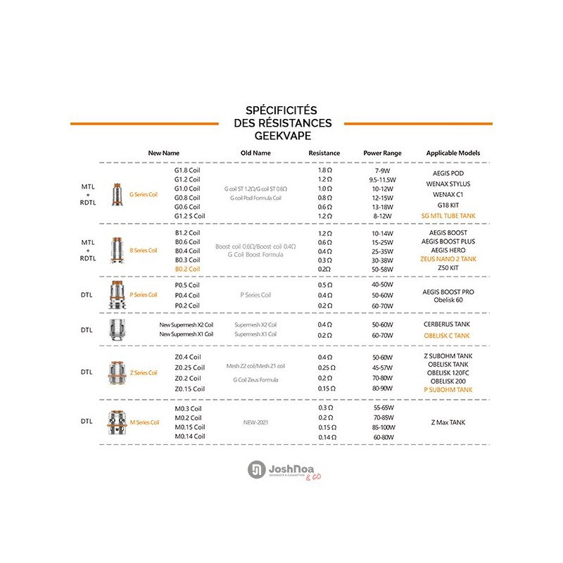 Résistances de remplacement pour le clearomiseur Z Sub Ohm, P Sub Ohm, Obelisk, et le kit Aegis Legend 2 de Geekvape.